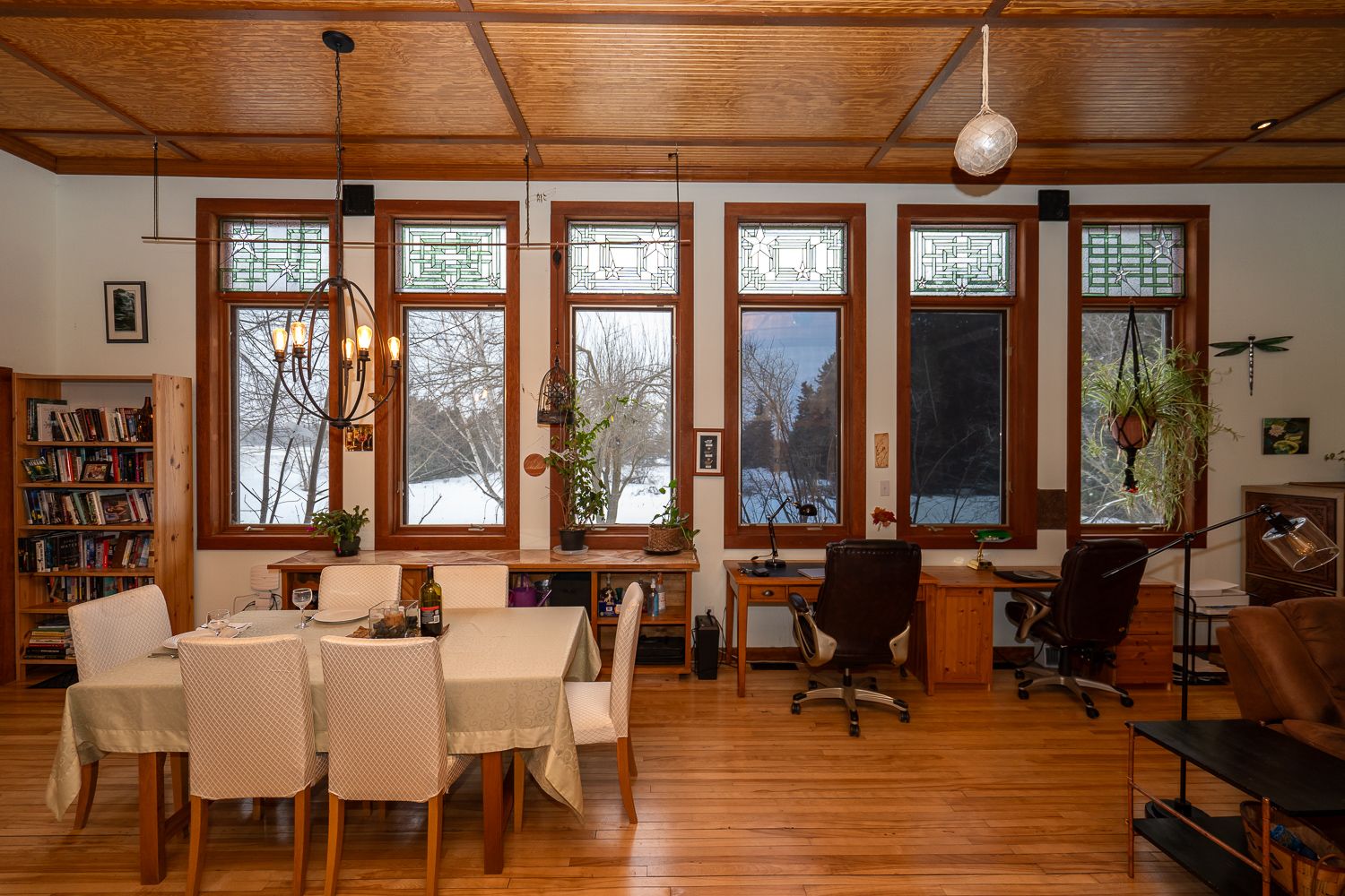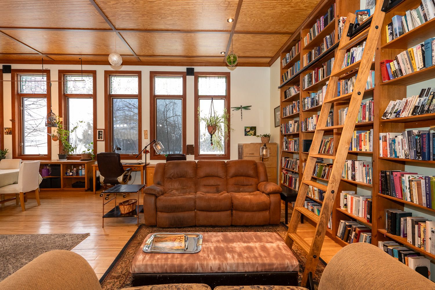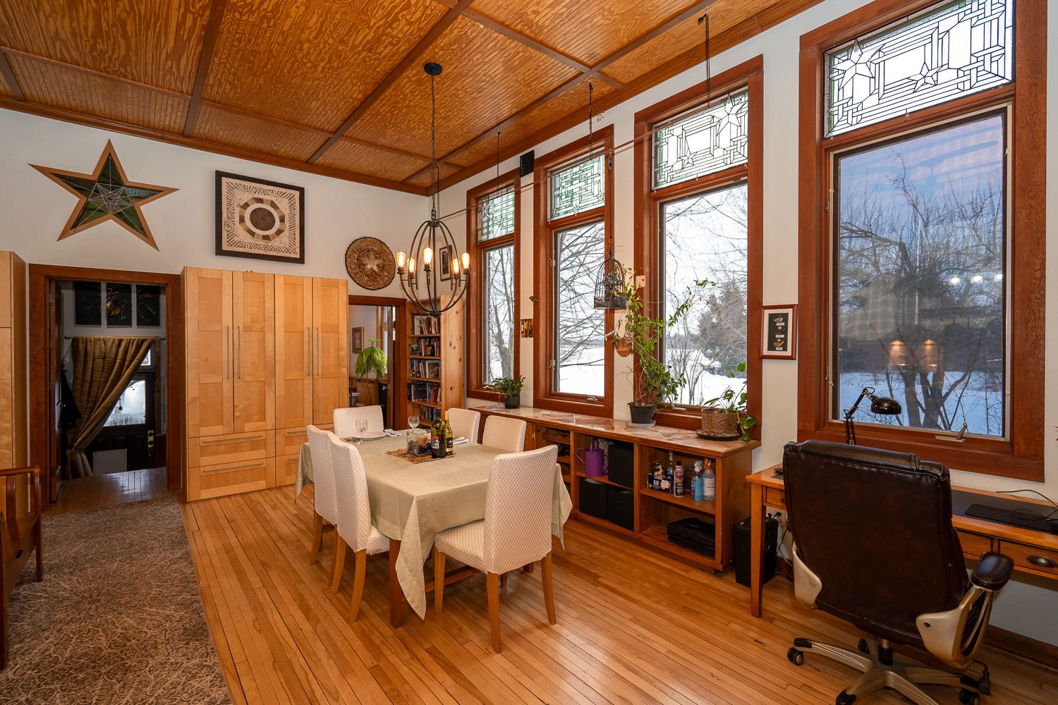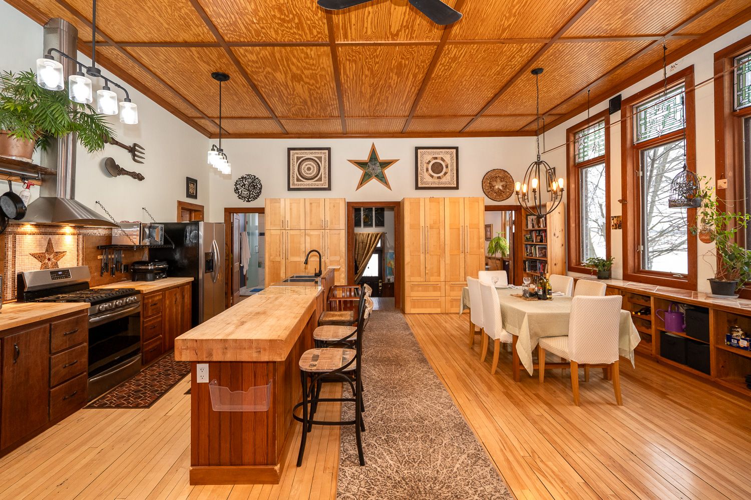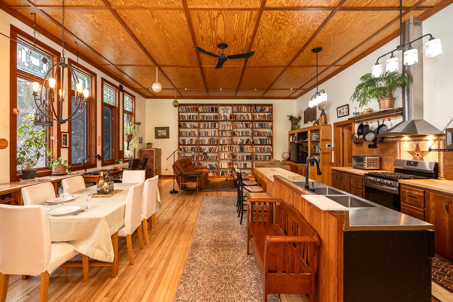 The charm and character here are unrivaled, with 13 foot ceilings, many original features kept, and an incredible bank of large, west facing windows with stained glass.