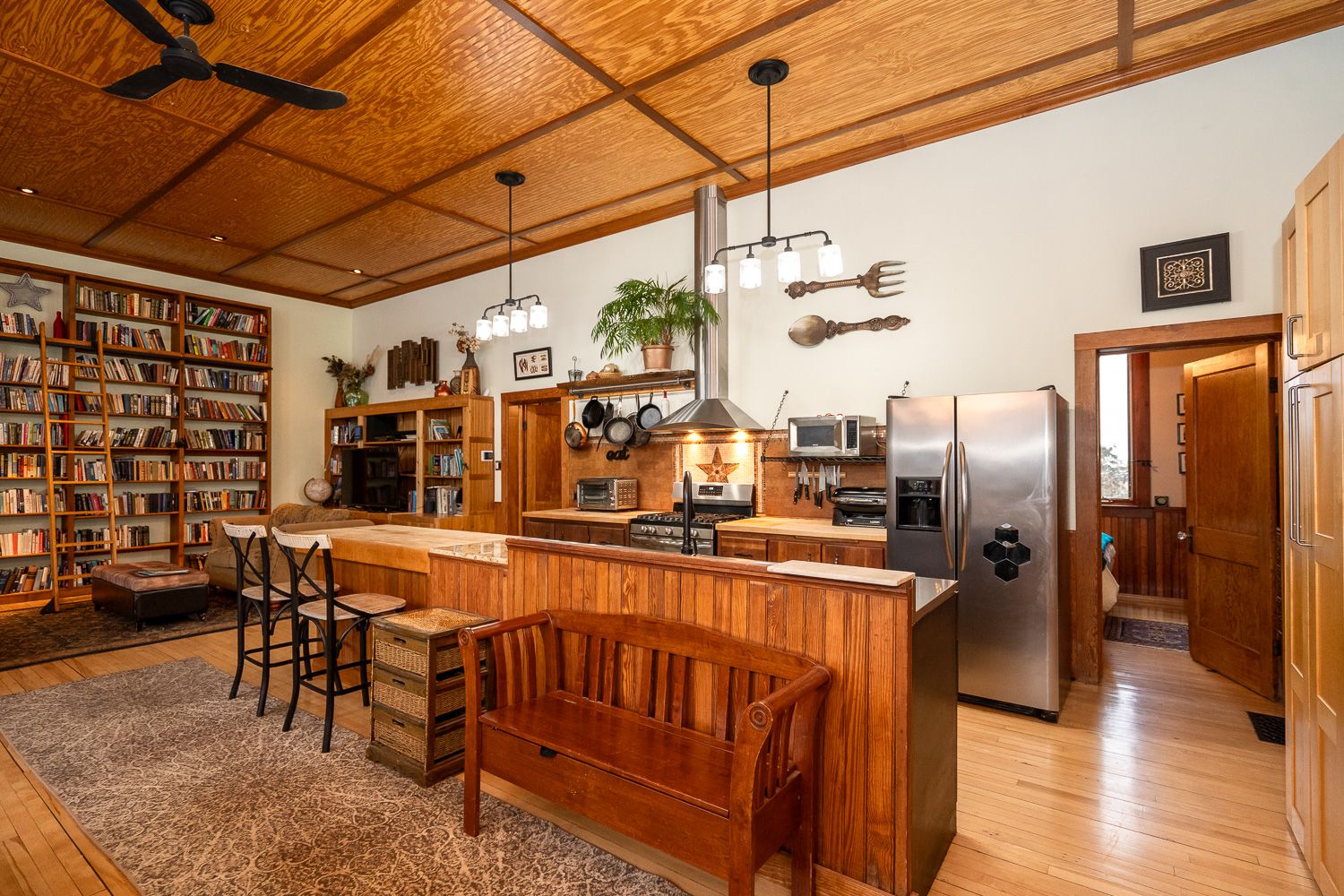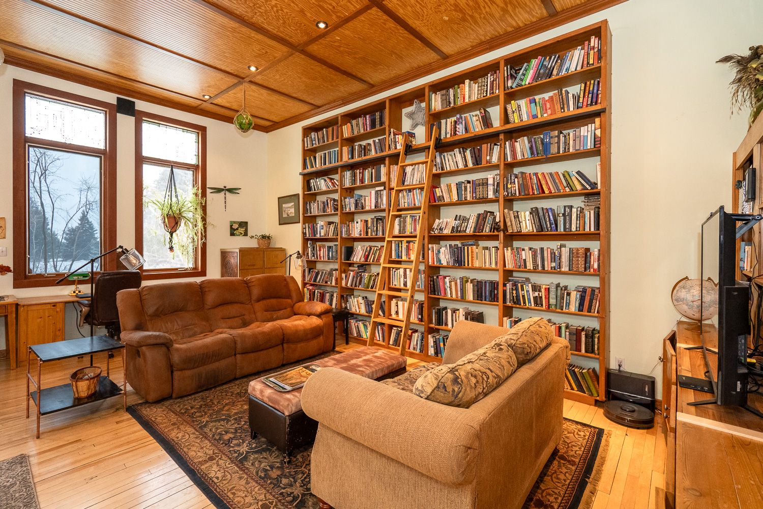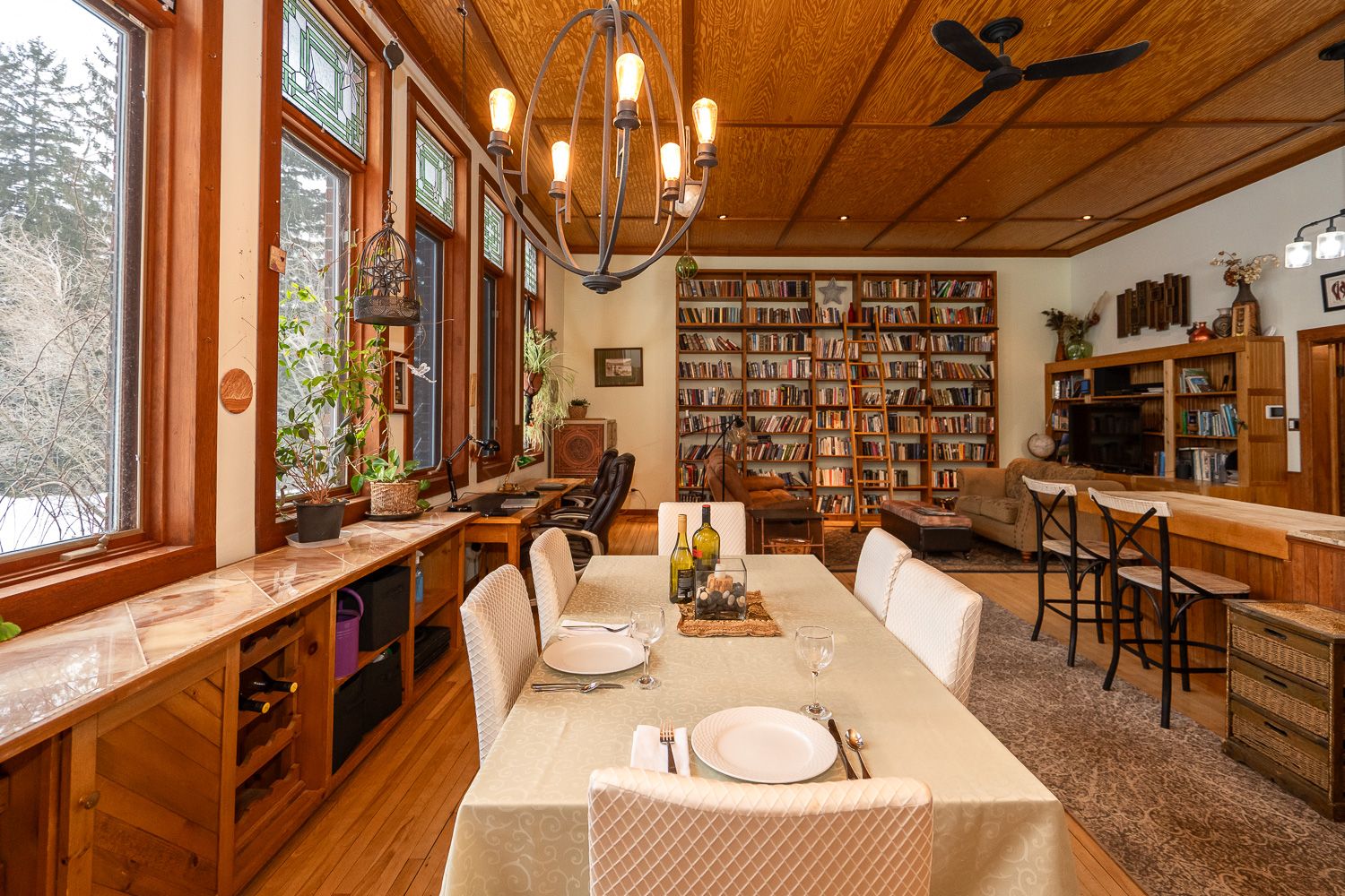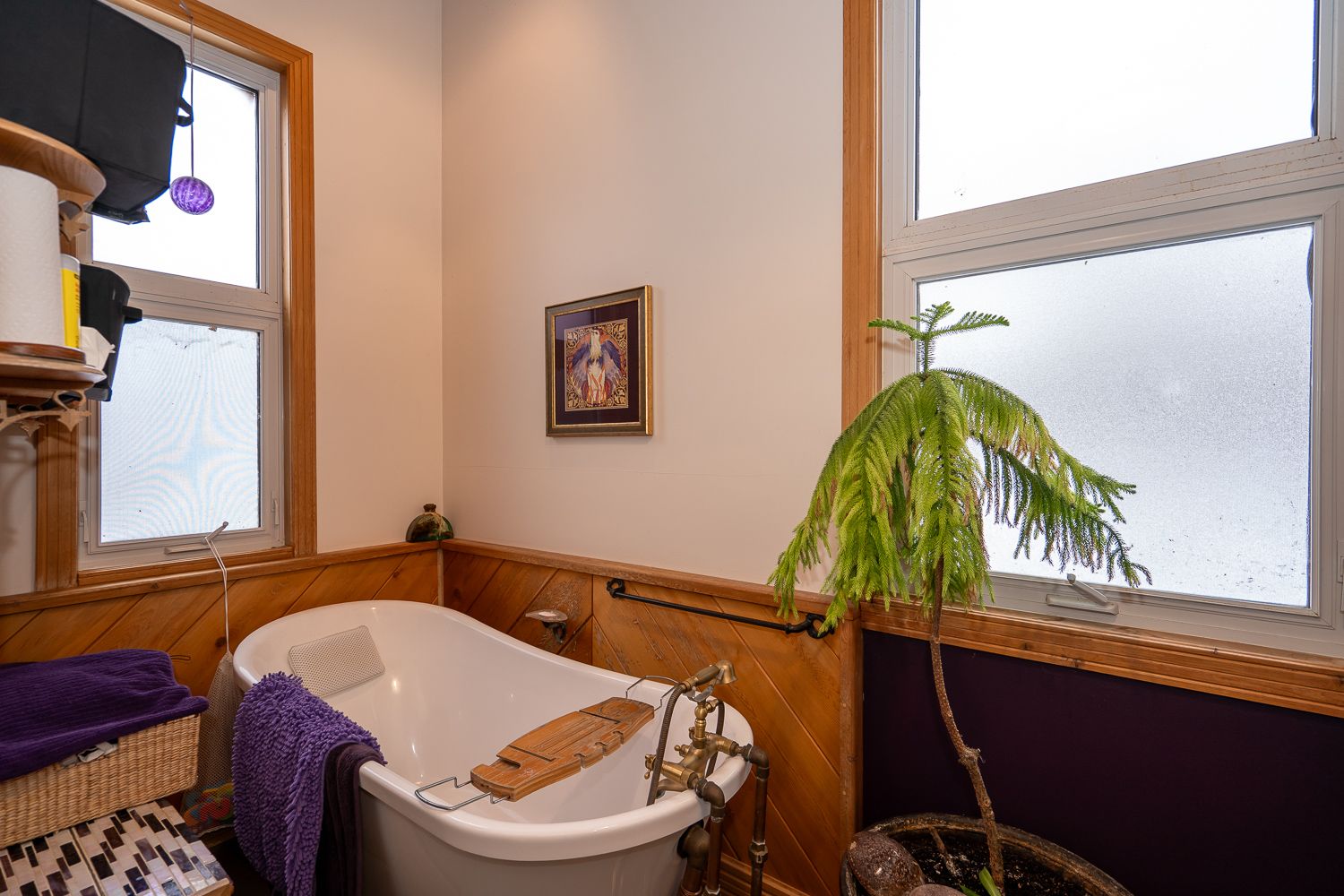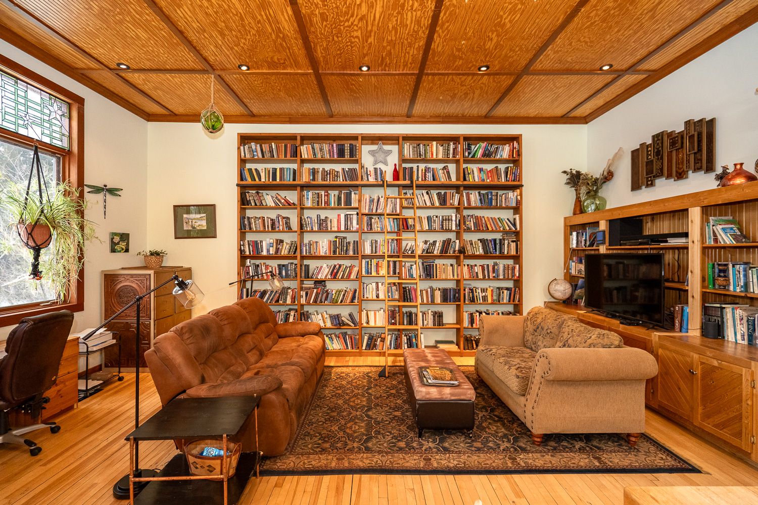 The charm and character here are unrivaled, with 13 foot ceilings, many original features kept, and an incredible bank of large, west facing windows with stained glass.