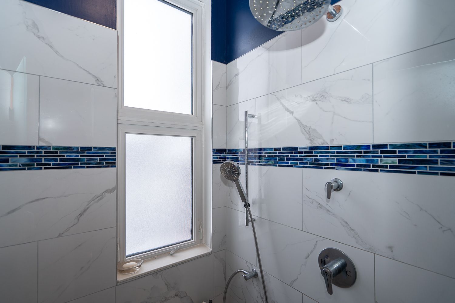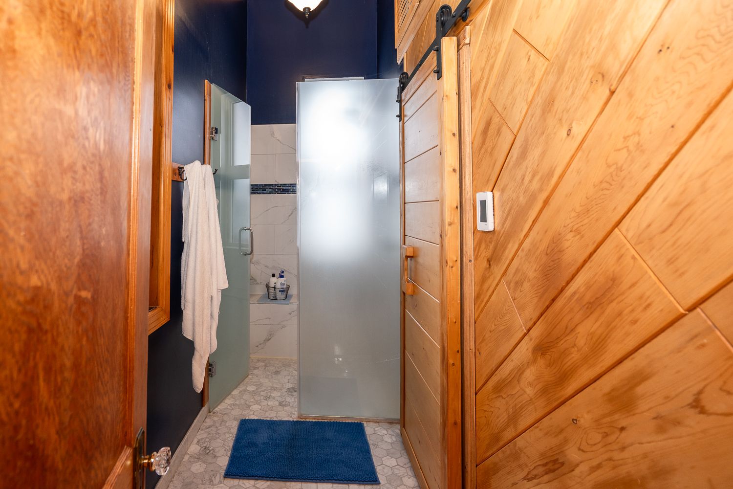 2 bedrooms on main floor, with 2 bathrooms (one is a separate shower with heated floors)