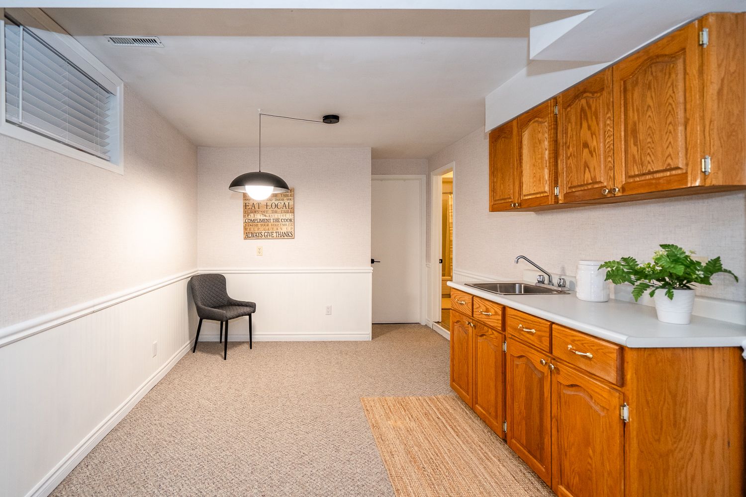 Basement is nicely finished with large rec room featuring wood FP, bonus area with sink, R/I for stove, 5th bdrm, and 4 pc bath